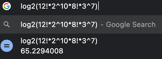 to answer the question, how many yes/no question you have to ask yourself to describe a random scramble, you can calculate the log₂ of that number. He quickly typed this in Google search bar, which is the same as log₂(4,325200327449e19):