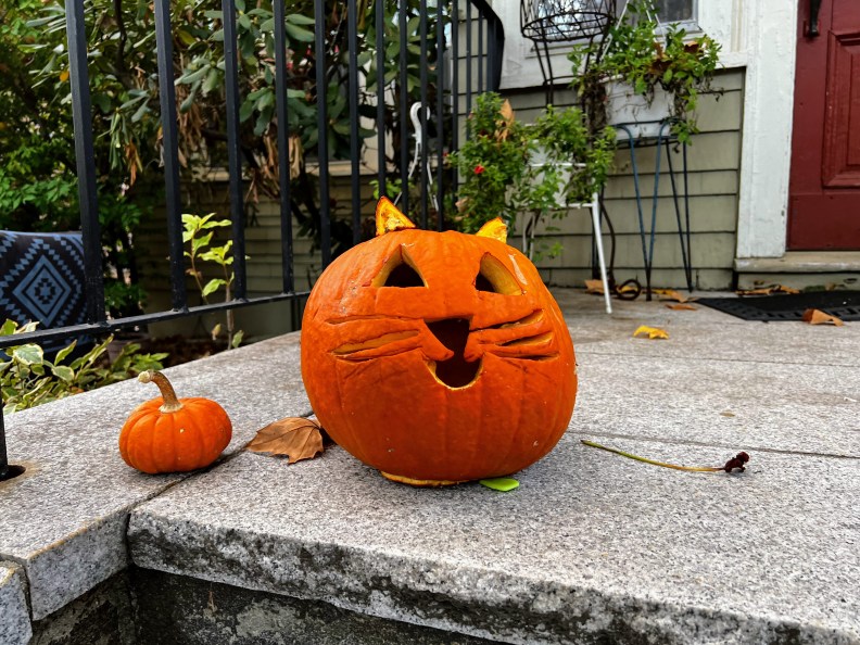 In Simon’s case, it is about avoiding Halloween decorations. Should he continue on this side of the road and happen to walk past three pumpkins or cross the street and avoid these pumpkins but pass one pumpkin on the opposite side? In the latter scenario, he would be consciously choosing to walk past that pumpkin, which he would never want to do. Besides, it is often not just pumpkins, but giant spiders and moving Frankensteins!