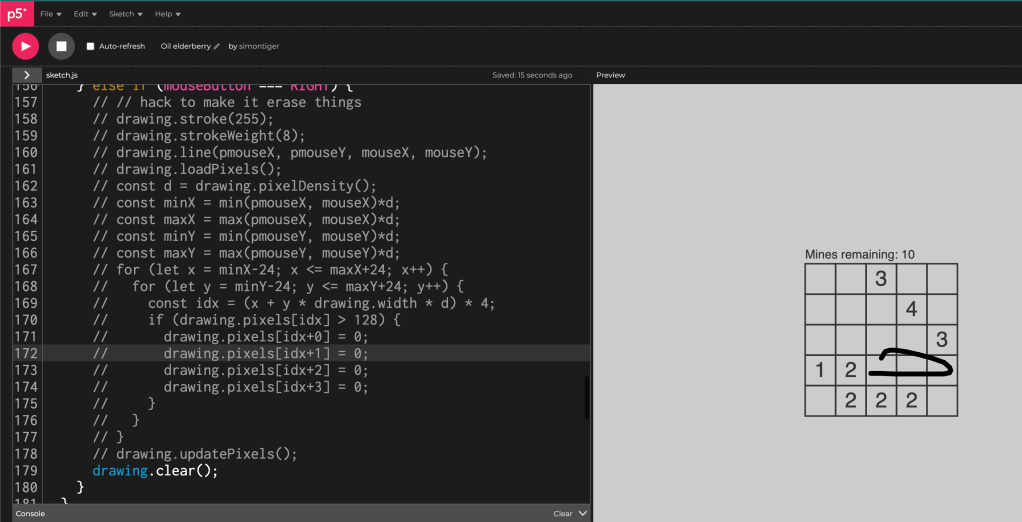 At a later stage, Simon also added some new features, like multiple variants or a drawing tool. Link to his code (WARNING: there’s no UI so you have to directly change the code to access some features): https://editor.p5js.org/simontiger/sketches/7ZYI7KcJk