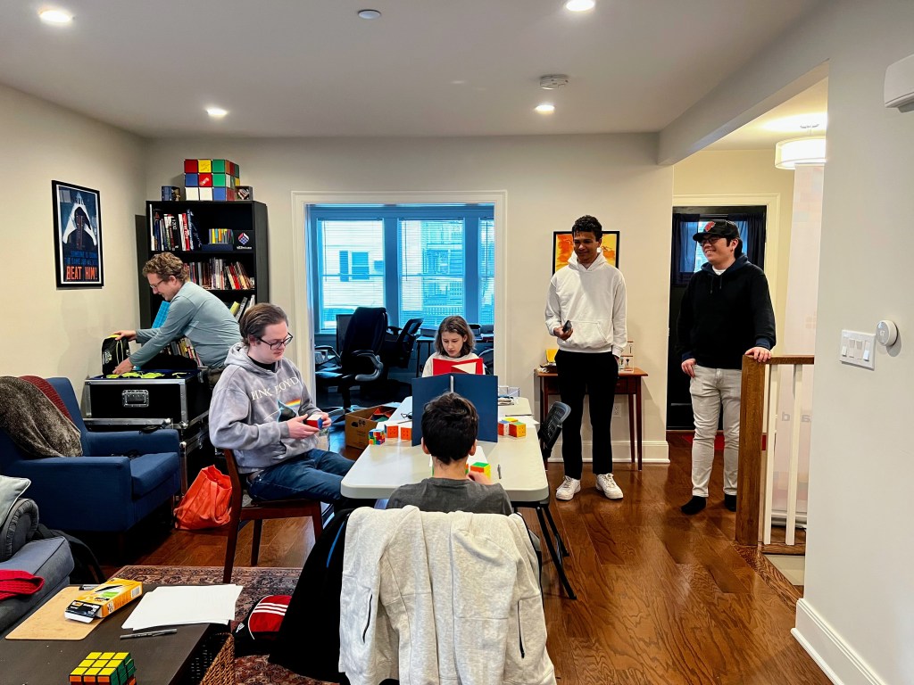 The Cambridge competitions are low key in the sense that they take place at one of the competitors’ home, but don’t be fooled: the crowd showing up is a group of top rank local cubers. These regular comps mostly include the fewest moves and blindfolded events, i.e. the most concentration intensive events that require absolute silence and provide for the best exercise of that brain muscle (just kidding, I’m aware that brain isn’t a muscle!)