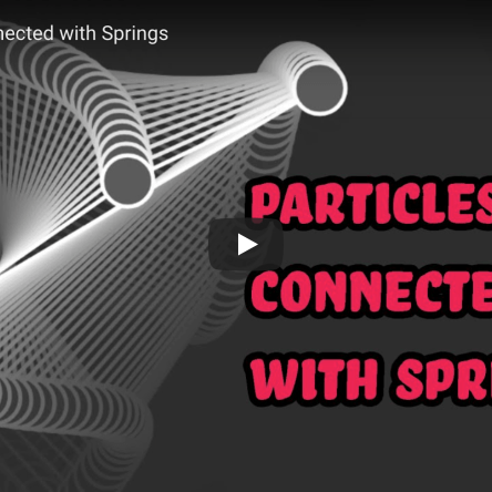 Simulation of multiple particles connected mutually with springs. Made for Dan from the Coding Train. Simon’s original code with 2 particles: https://editor.p5js.org/simontiger/sketches/18ib3ZNKm Four particles: https://editor.p5js.org/simontiger/sketches/gkexoSqZZ Simon has also started building … Continue reading Particles connected with springs and Simon’s Physics Library